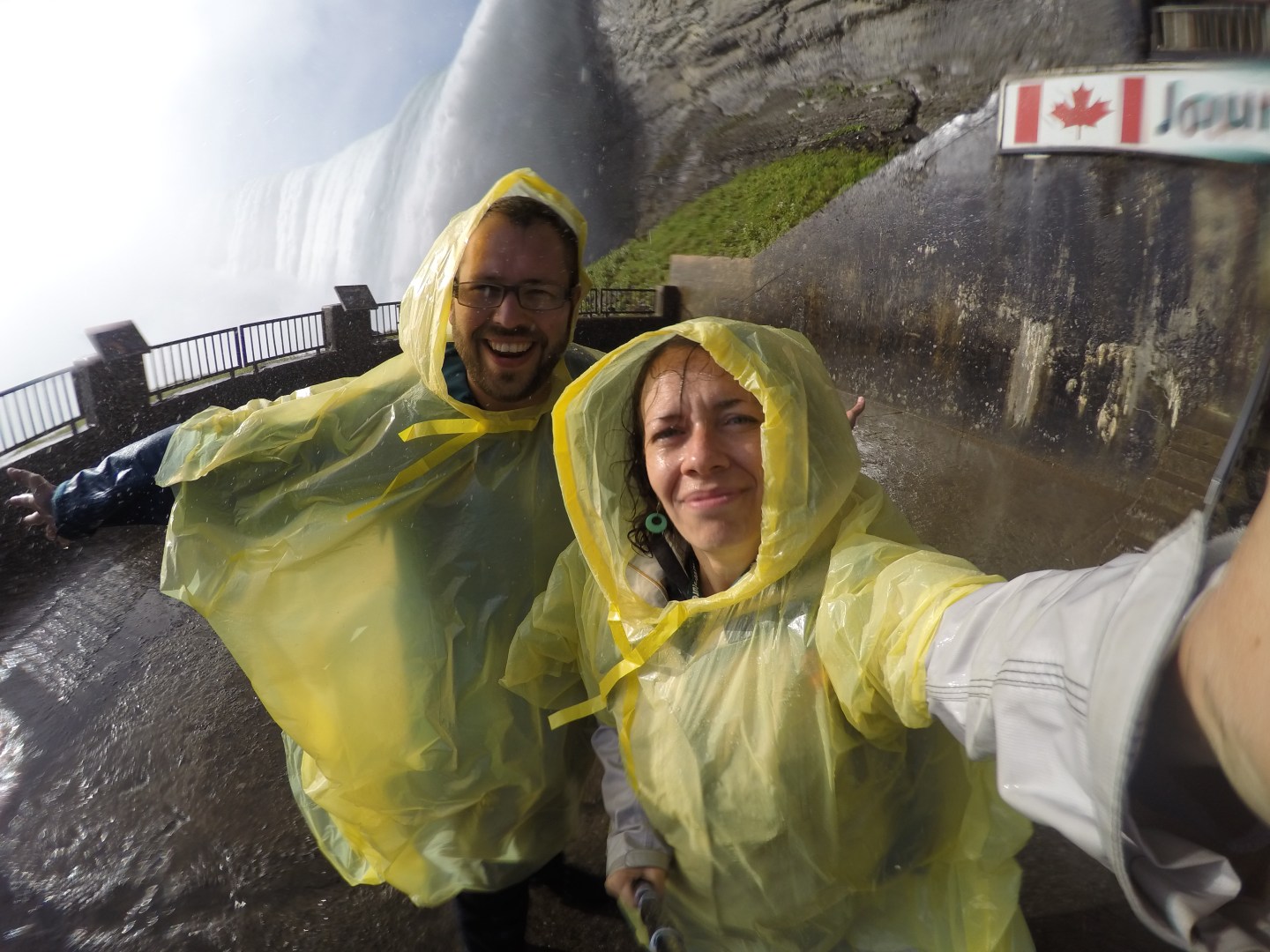 Première étape à « Journey behind the falls » une balade qui passe par un tunnel qui nous amène derrière une des chutes (côté Canadien) on était noyés ! Quelle puissance c’était incroyable. On s’en est encore plus rendu compte en bateau qui s’approche vraiment de très près la cascade. C’était un moment saisissant, et on était de nouveau noyés malgré les superbes panchos que l’on nous a prété ! la classe non?