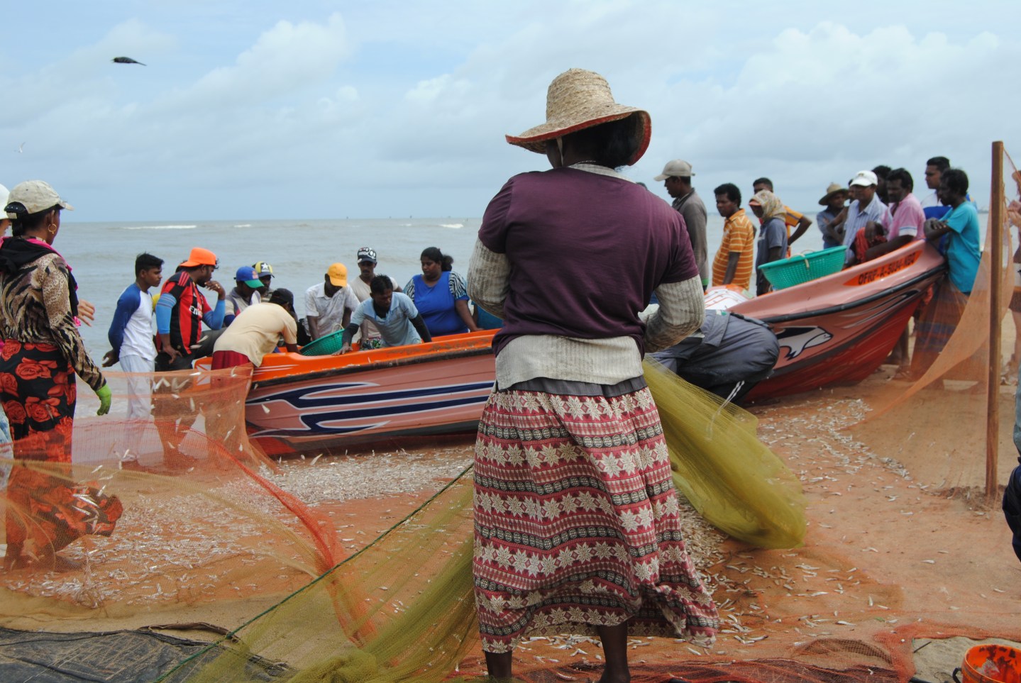 Le marché donne sur la plage ou est déchargé le poisson, quel travail ! Un bateau arrive, une dizaine de personnes le font remonter sur la plage avant de décharger le filet qu’il faut secouer pour récupérer les petits poissons. C’est un travail très dur qui rapporte très peu, le kilo de petits poissons est vendu moins d’un euro.