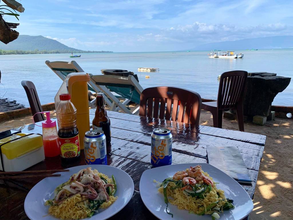 Avant de reprendre la Scenic Drive qui suit la côte du nord ouest vers le sud ouest de l’île, vers Hàm Ninh, nous nous arrêtons manger au bord de la plage Thom qui fait face au Cambodge pour y manger des noodles aux crevettes et calamars.