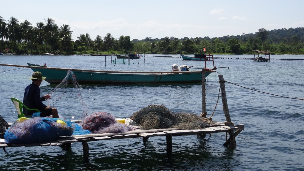 Nous observons depuis la passerelle quelques bateaux qui partent ou reviennent, des pêcheurs préparer leurs filets…