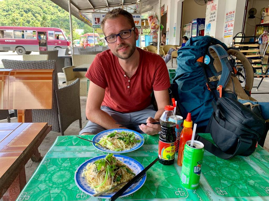 En attendant le bus programmé à 13h, nous prenons un petit repas 🙂