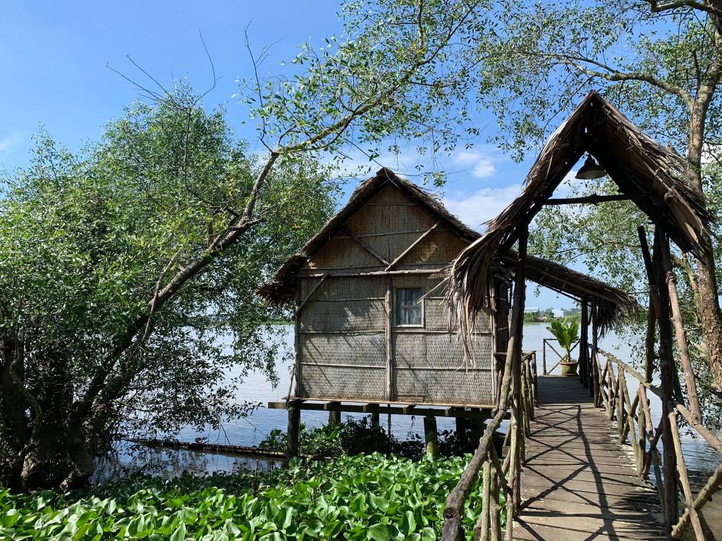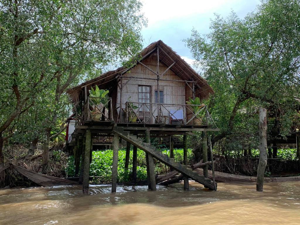 Complètement rincés après près d’une quinzaine de kilomètres parcourus, nous rencontrons la sympathique famille qui va nous héberger et notre cocon pour ces deux prochaines nuit : une cabane au bord du Mékong ! Certainement l’hébergement le plus authentique dans lequel nous allons dormir !