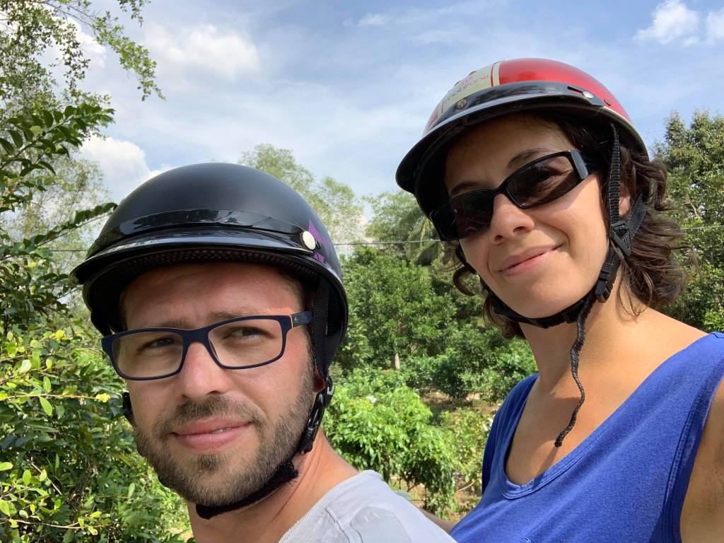 On grimpe dans le bus réservé par nos hôtes direction Vinh Long, puis des motos taxi réservées par la Happy Family Guest House où nous dormirons les deux prochaines nuits viendront nous chercher pour traverser le fleuve.