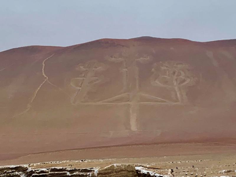 Le mystérieux géoglyphe du Candélabre nous fait face, cette curiosité mesure 150m de long sur 50 de large, on ne sait pas qui l’a réalisé et pourquoi.