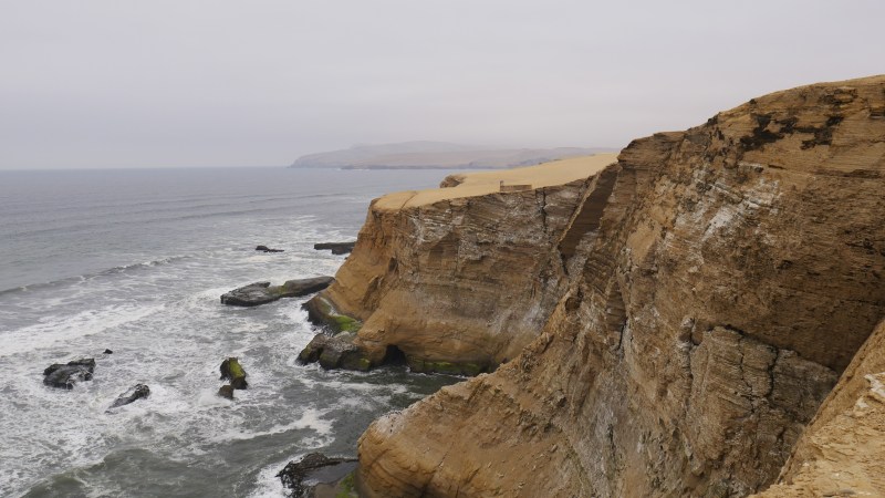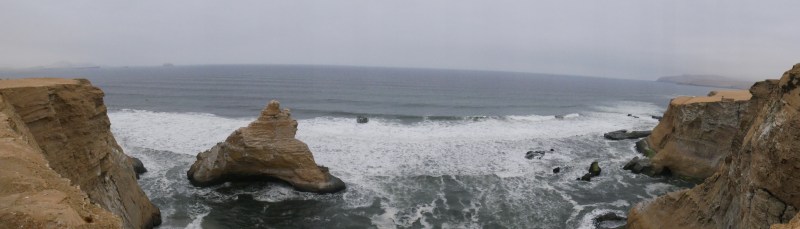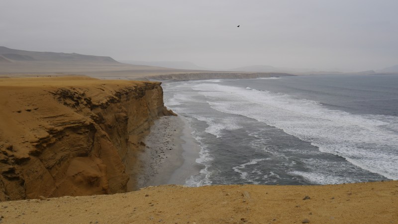 En fin de matinée nous partons avec le bus pour la réserve nationale de Paracas, cet environnement lunaire nous a surpris par la couleur des falaises de bord de mer : jaune, brun, ocre…