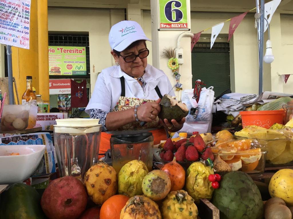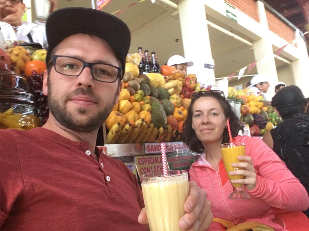 On se pose parmi les étals déguster un petit smoothie, qu’une gentille dame nous a préparé…